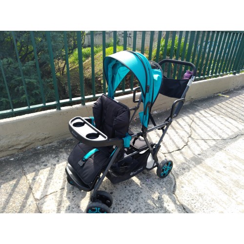 Transporta 2 crianças. Uma na frente (até 4 anos) e outra atrás (até 8 anos).